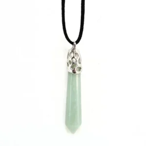 Colgantes de piedras semipreciosas con forma de punta grande, variadas de 55 x 12 mm aprox., para protección, salud, amor, suerte o trabajo, con suave antelina de 55 cm.