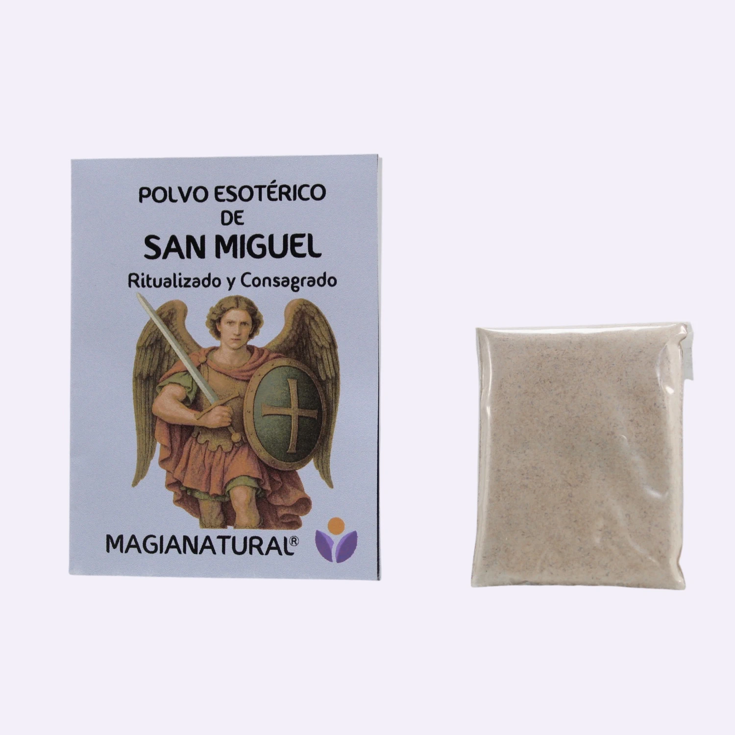 La energía del Arcángel Miguel se invoca para abrir caminos, cortar lazos nocivos, alejar malas intenciones y restaurar la luz en cualquier espacio o persona. Su presencia es símbolo de fuerza, justicia y defensa espiritual, y este polvo actúa como un canal para esa vibración protectora.