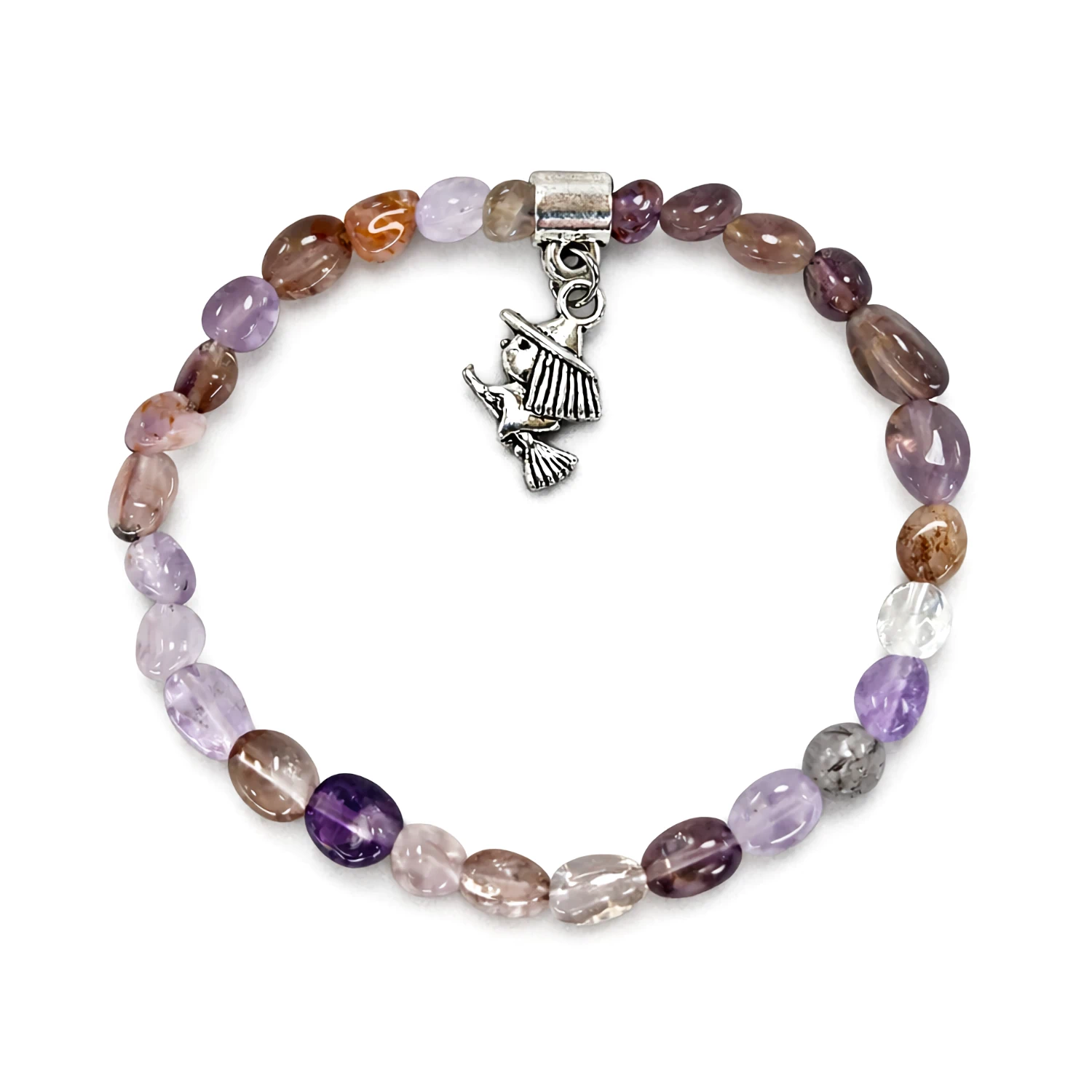 La Pulsera de Cuarzo Fantasma es una de las piezas más enigmáticas y espirituales dentro del mundo mineral. Este cristal contiene en su interior un pequeño cuarzo blanco o coloreado, una formación fantasma que simboliza la conciencia universal y los múltiples niveles de existencia. Su energía tiene el propósito de estimular la sanación del planeta y activar las capacidades curativas de cada individuo, conectando con guías espirituales y potenciando la meditación profunda. El cuarzo fantasma facilita el acceso a los registros akáshicos, permitiendo leer vidas pasadas, recuperar recuerdos olvidados y comprender el propósito del alma. También puede llevar al estado entre vidas, ofreciendo una visión más amplia del camino espiritual. En el ámbito terapéutico, trata desórdenes de la audición, abre la clariaudiencia y favorece la percepción sutil. Además, ayuda a liberar bloqueos energéticos, impulsa el crecimiento personal y acompaña procesos de transformación interior. Su vibración es ideal para quienes buscan evolución espiritual, conexión con planos superiores y una herramienta poderosa para la sanación energética.