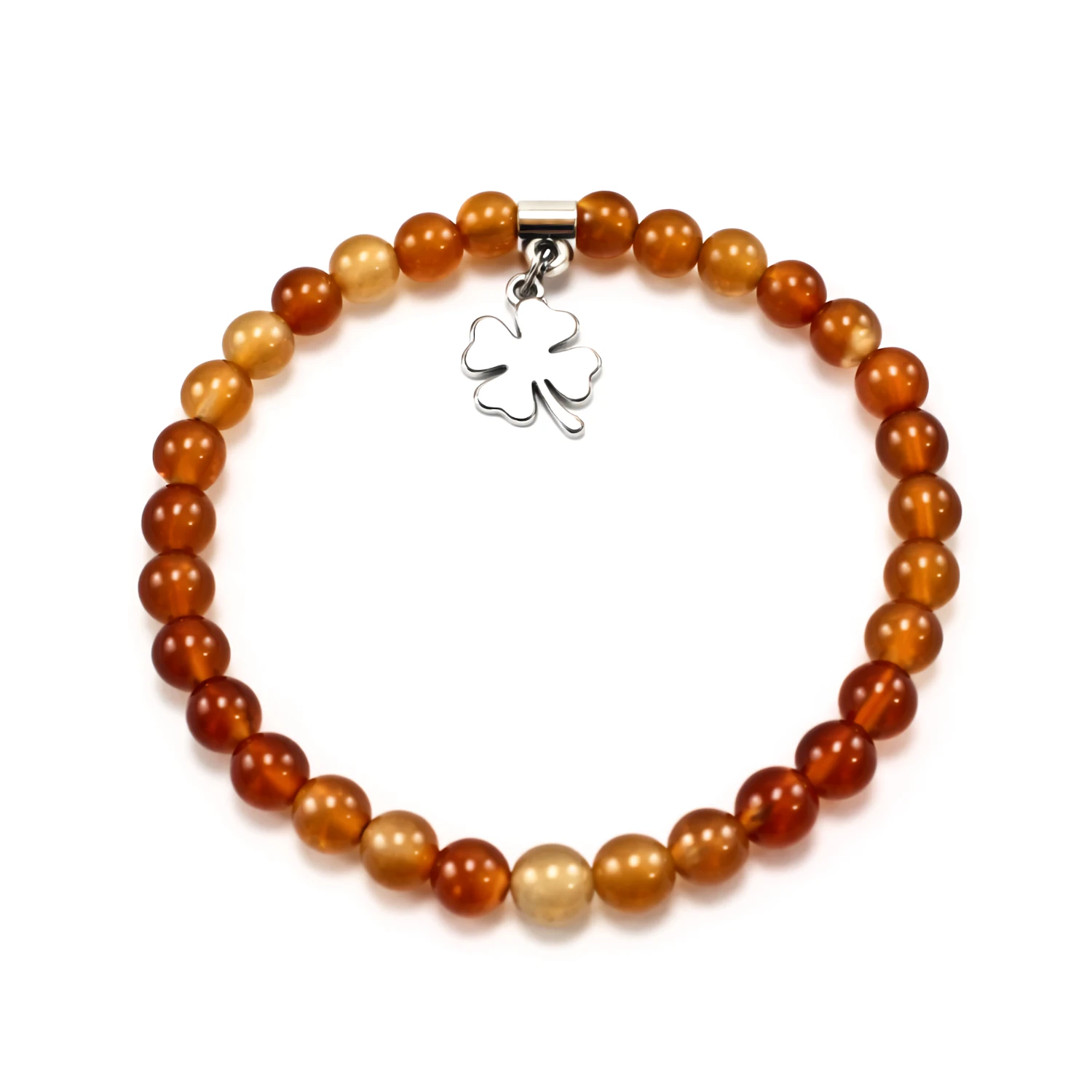 Las Pulseras de Carneola están elaboradas con una de las piedras más antiguas y poderosas de la familia de las ágatas. Su vibración cálida y su característico color naranja han sido apreciados durante siglos por su capacidad para restaurar la vitalidad, estabilizar la energía y fortalecer la motivación personal. La carneola es conocida como una piedra limpiadora de otras piedras, capaz de purificar y revitalizar energéticamente cualquier cristal que se coloque a su lado. Promueve la aceptación del ciclo de la vida, disuelve el miedo a la muerte y aporta una profunda sensación de paz interior. A nivel emocional, impulsa la confianza, reduce el enfado y calma la ira, ayudando a mantener una actitud equilibrada y centrada. Es una piedra ideal para atraer éxito en los negocios, activar la creatividad y fortalecer la determinación para alcanzar metas. En el plano protector, la carneola actúa como un escudo contra envidias e influencias negativas, manteniendo el aura limpia y estable. En el ámbito físico, influye en los órganos reproductivos, incrementa la fertilidad y mejora la asimilación de vitaminas y minerales, favoreciendo el bienestar general. Su energía cálida y revitalizante convierte a estas pulseras en un amuleto perfecto para quienes buscan fuerza, estabilidad y crecimiento personal.